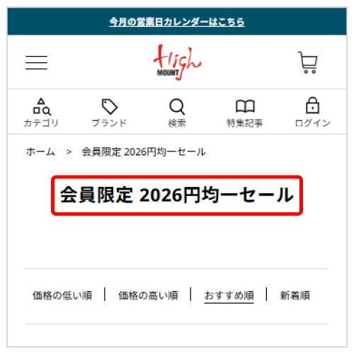 【会員限定】2026円均一セール開催!│ ハイマウント公式オンラインストア