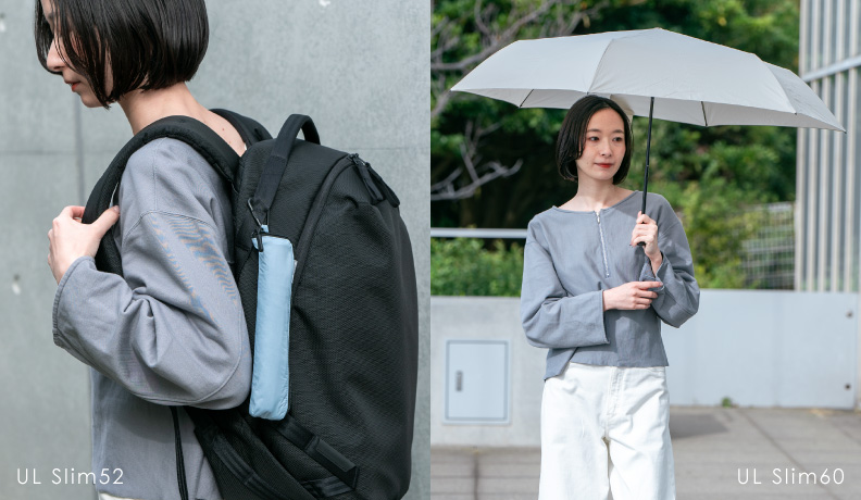 携帯しやすい軽量仕様を実現した、15デニール生地採用の「UL (ウルトラライト) シリーズ」が登場。 日常使いはもちろん、旅行やちょっとした外出など、さまざまなシーンで快適に持ち運べる携帯性の高さが魅力の新シリーズです。本シリーズは、「UL Slim52」と「UL Slim60」の2サイズ展開。