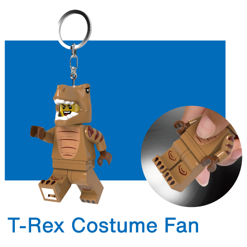 全高約5~10cmのミニフィグ型ライトは、腕や脚が可動し、さまざまなポーズを楽しめます。両足底の高輝度LEDは胸のボタンで点灯し、脚の角度を変えることで照らす方向も自在。丈夫なチェーン付きで、バッグや鍵にも安心して取り付けられます。電池交換にも対応しており、長く愛用できる設計です。