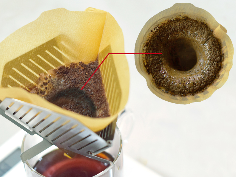 挽き目は細かめで、写真程度の粒度を目安にしてください。抽出時間が2〜3分に収まるような挽き目を目指していきます。